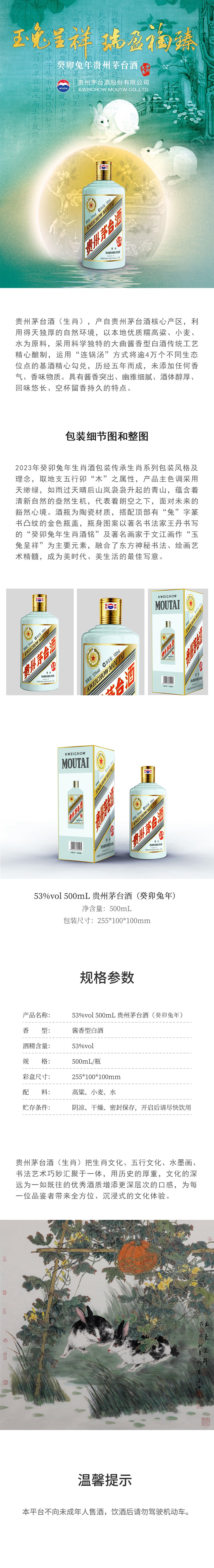 贵州茅台酒(生肖) 类型:酱香型白酒 度数:53%vol 规格:500ml/瓶 产品介绍 上一篇:贵州茅台酒(精品) 下一篇:飞天贵州茅台酒(带杯) 相关产品 茅台迎宾酒(紫) 贵州大曲壬寅虎年 茅台王子酒(金王子) 茅台王子酒(酱香经典)